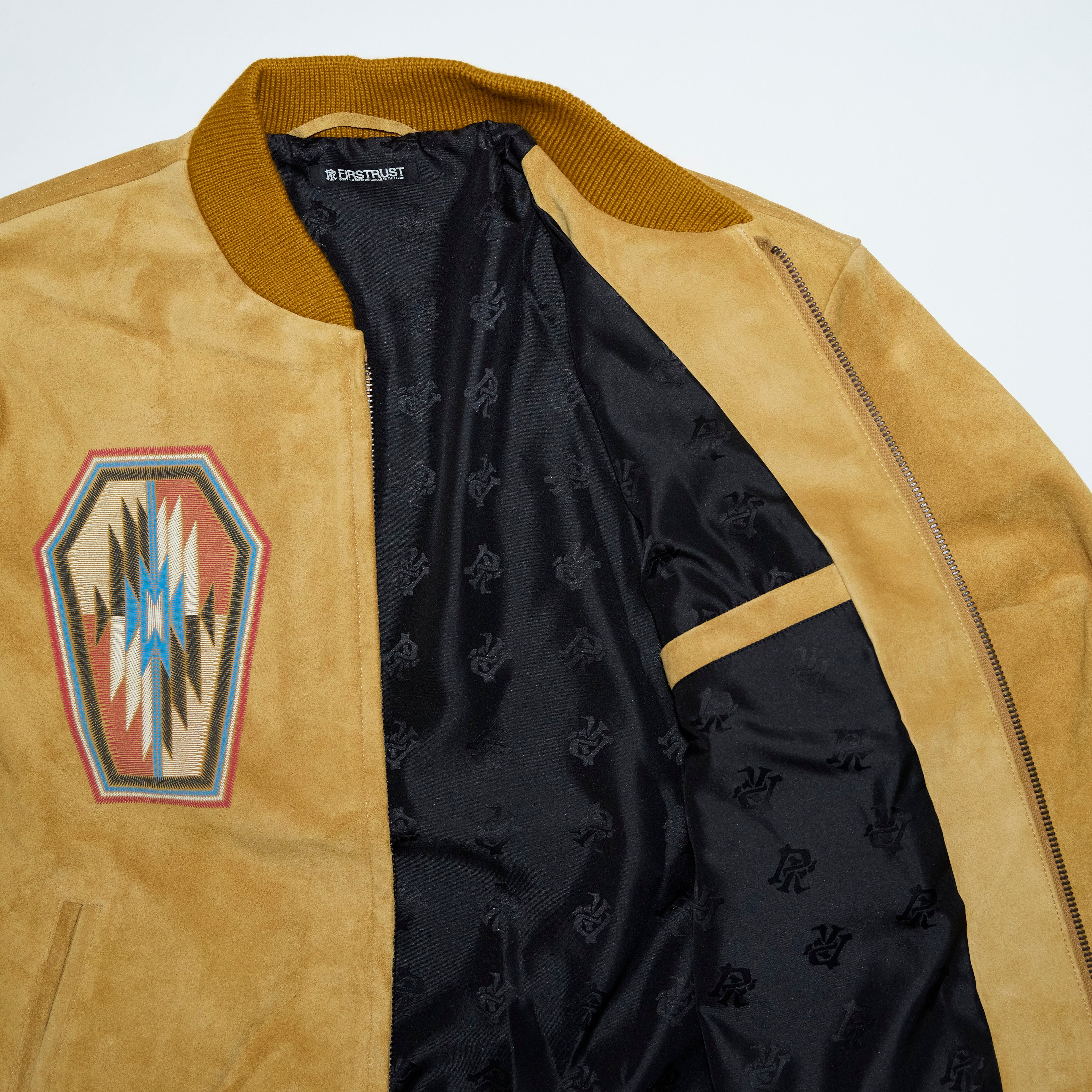 前身頃の両胸にはFIRSTRUST®のスローガンの一節、“GRAVE”を表現したコフィン・モチーフをレイアウト。