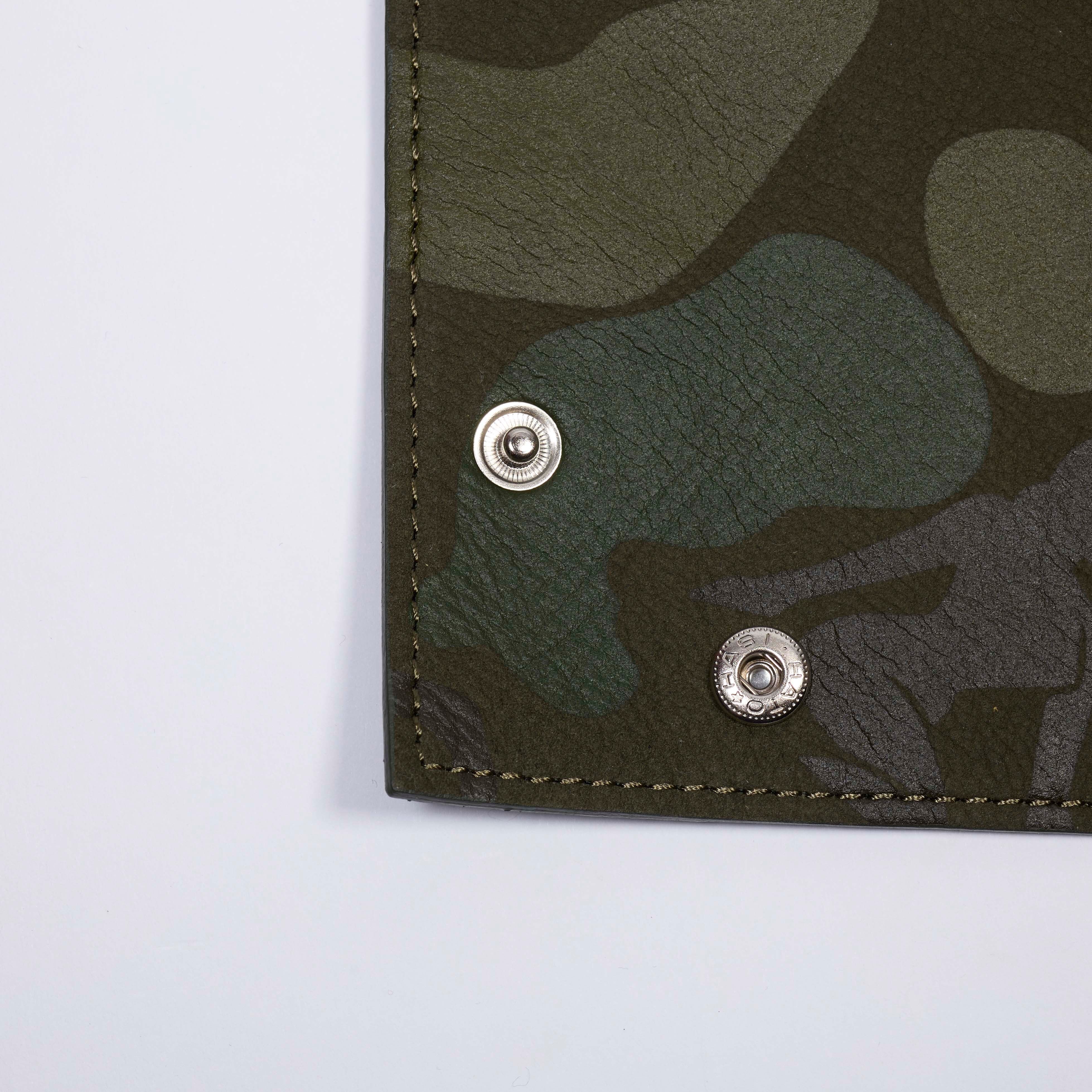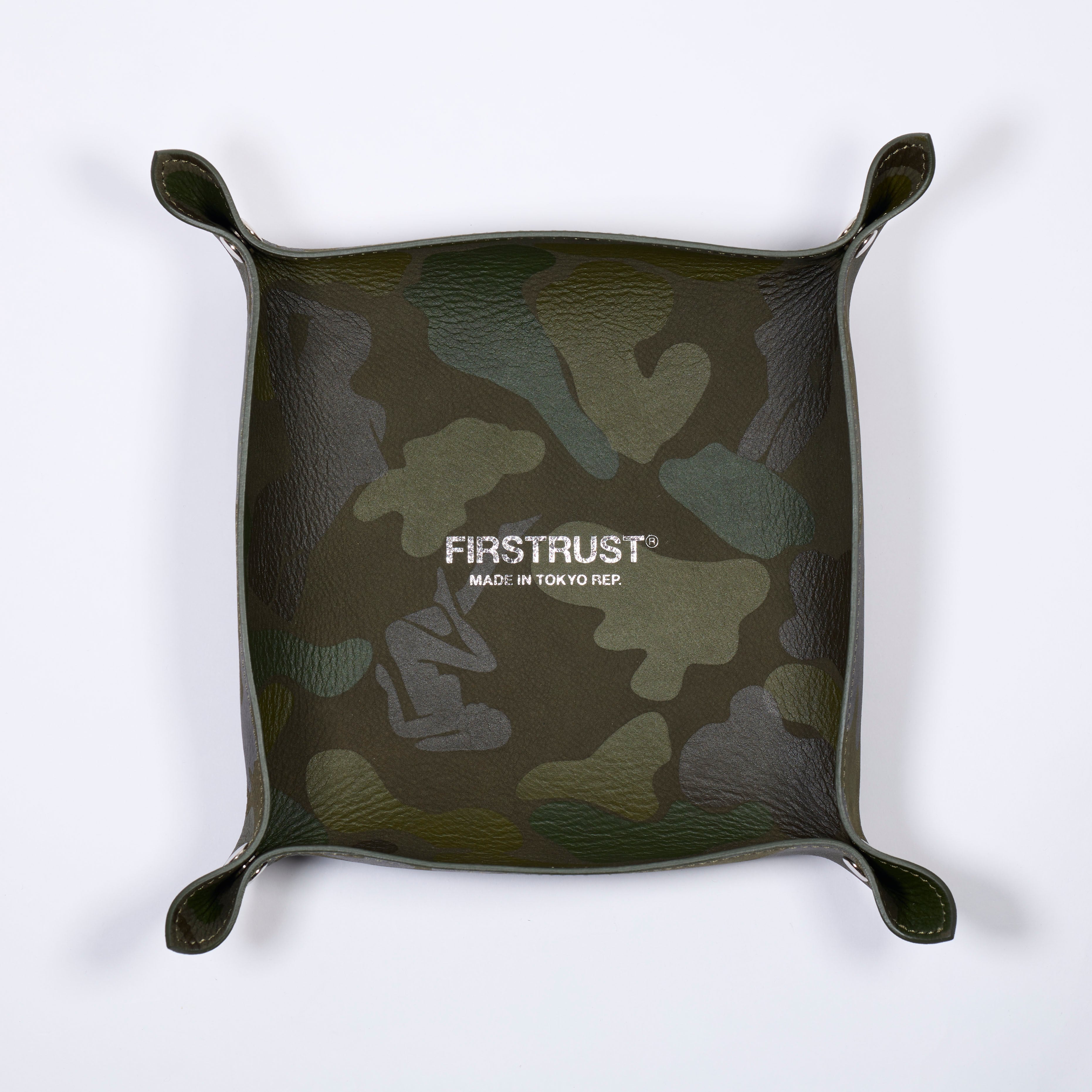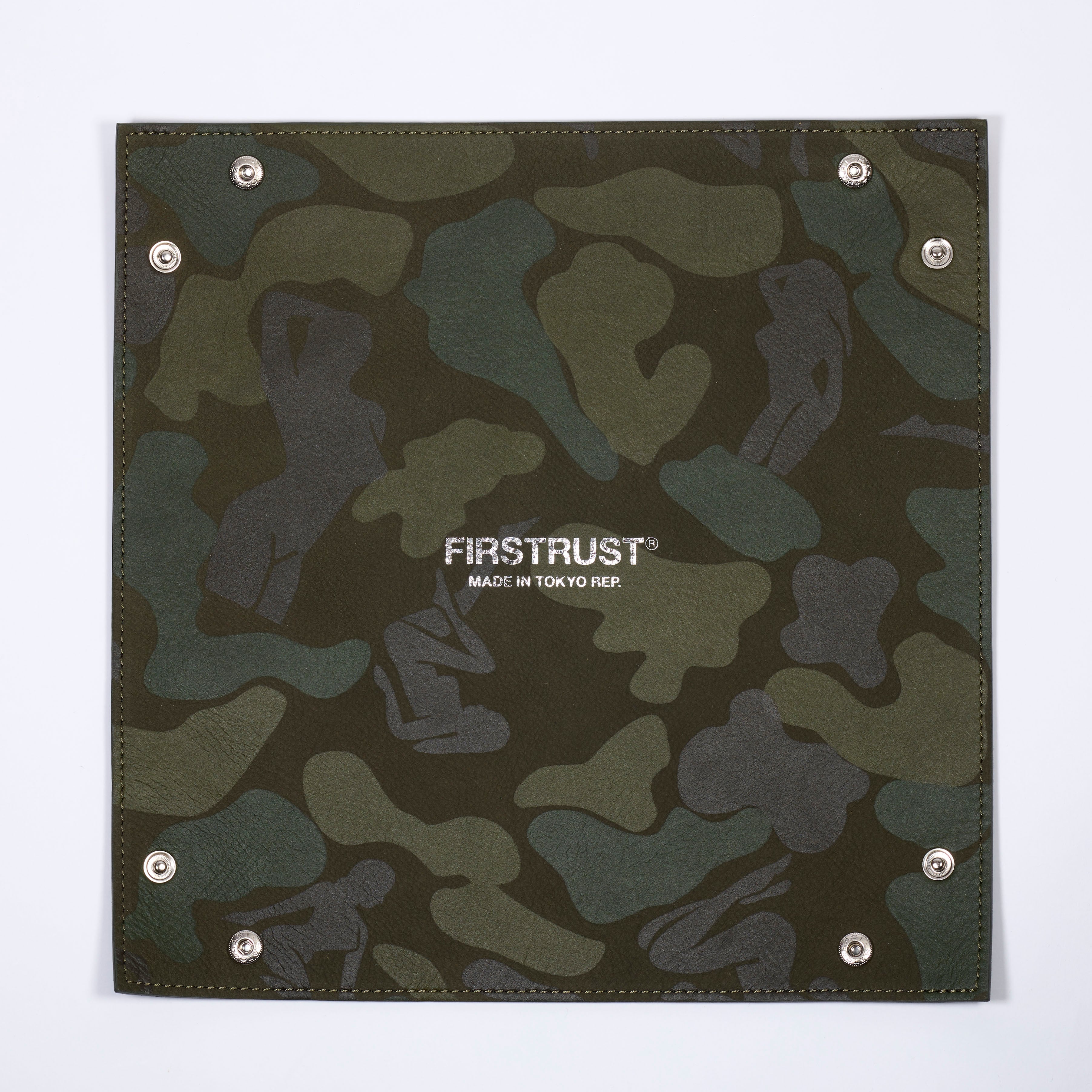 上質な国内の牛を鞣し、革の銀面(表面)を綺麗に研磨し、非常にきめ細かく起毛させたヌバックをベースに、FIRSTRUST®︎レーベルオリジナルの“ピンナップ・カモフラージュ”をランダムに配したカウレザー製のトレイ。