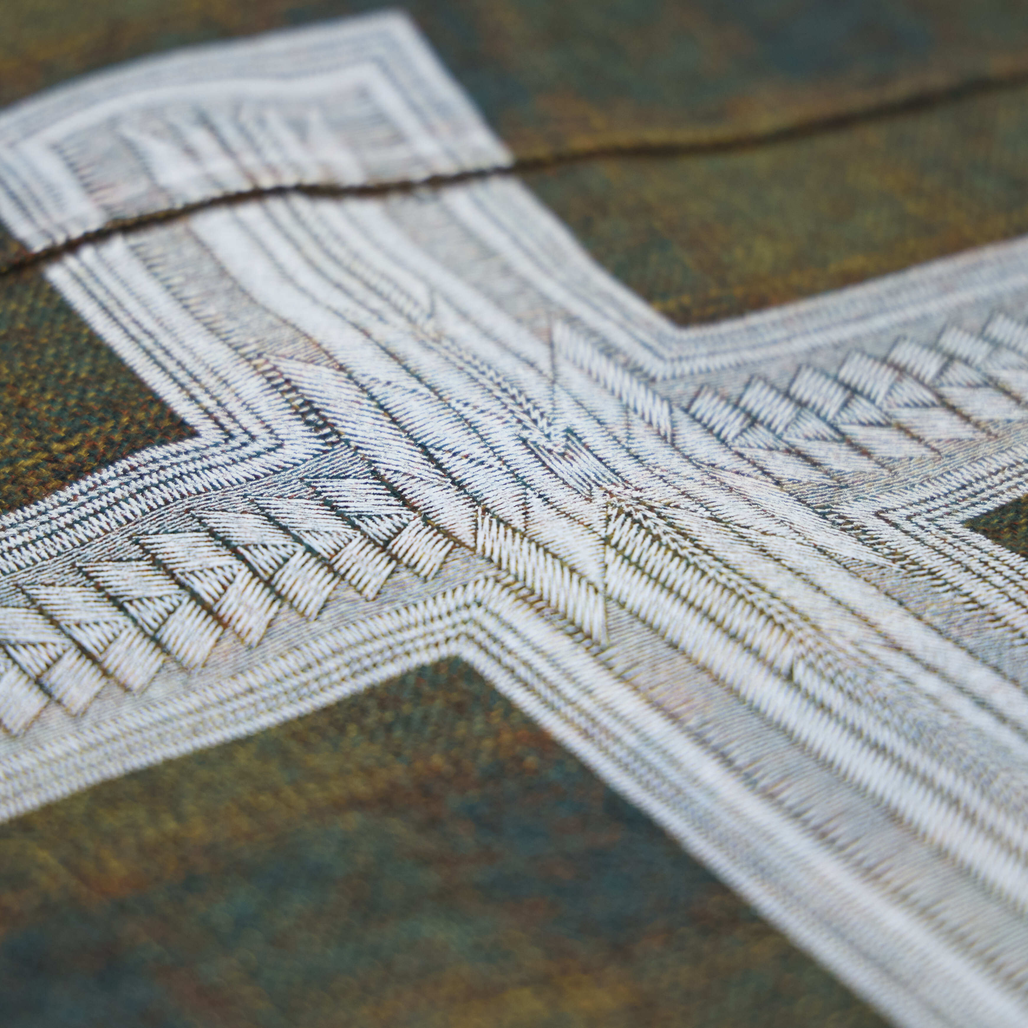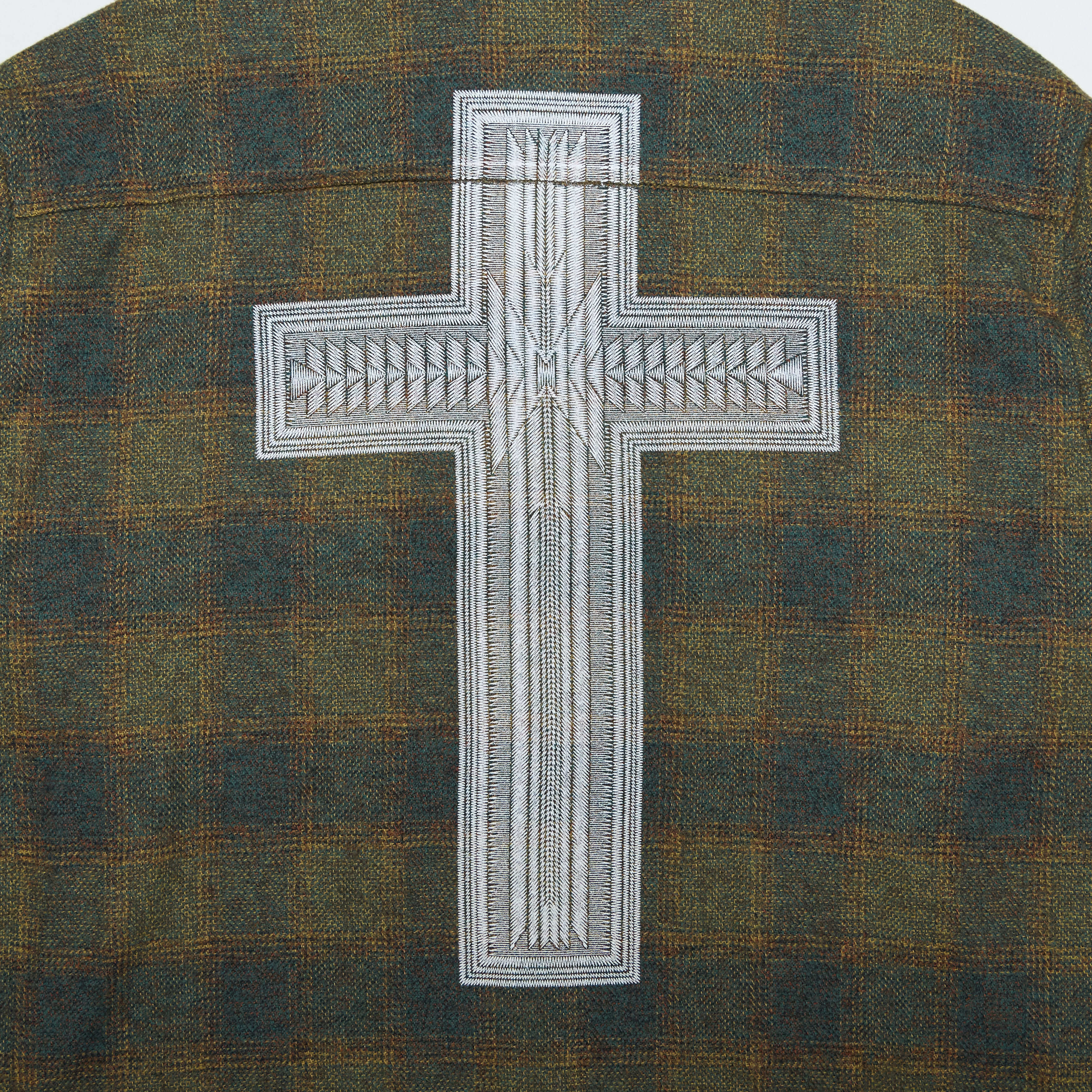 彼らにとって大切な数字「4」を表し、災いから身を守る「守護」、自分の心を開く「解放」の意味を司る、神聖なモチーフ、シンボリックなクロスが大きく主張する。