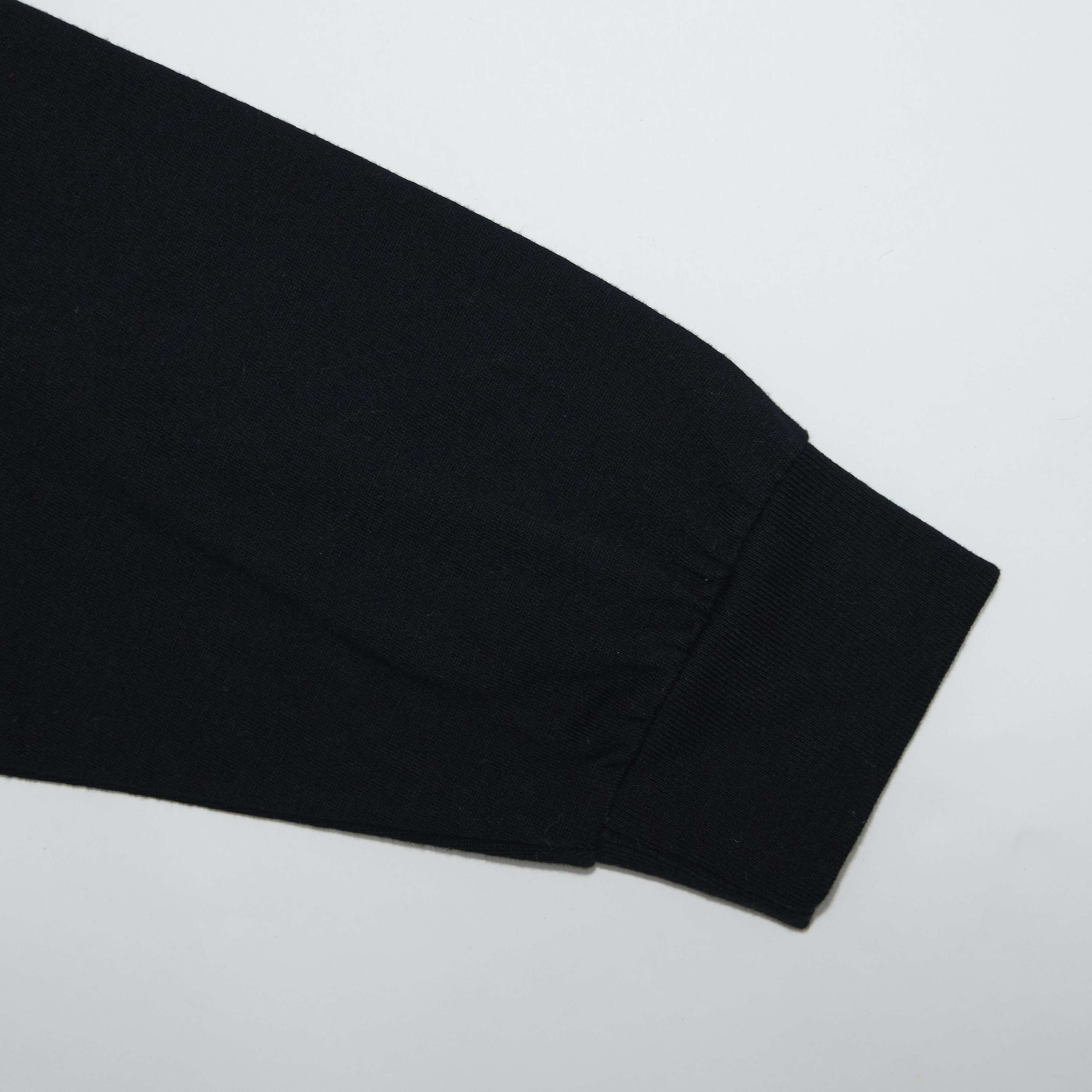 ネックと袖はシングルステッチ、裾はダブルステッチ仕様の6.0 ozボディ。